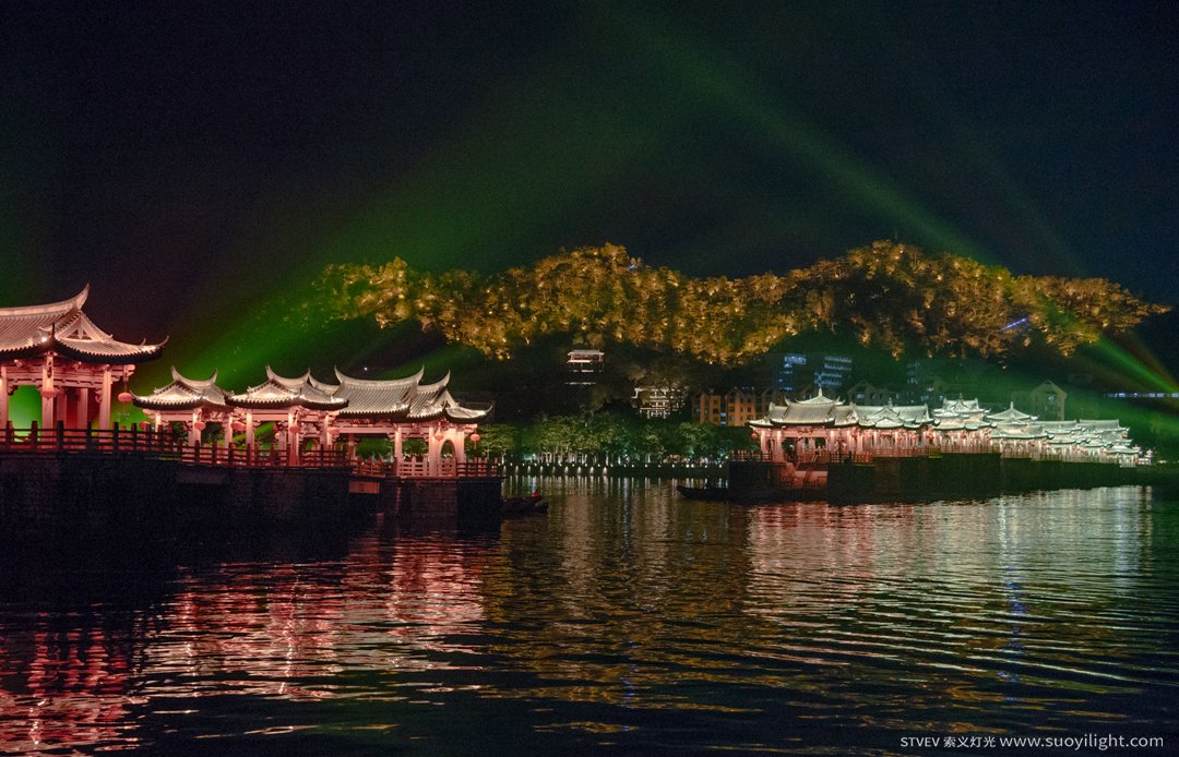 为了凸显古亭的特有建筑风格,实现色彩丰富的灯光效果,整座桥体安装了1万多套RGBW系列,单点单控的LED瓦楞灯、LED投光灯、LED洗墙灯,为光影秀的创作提供了更多的可塑性。